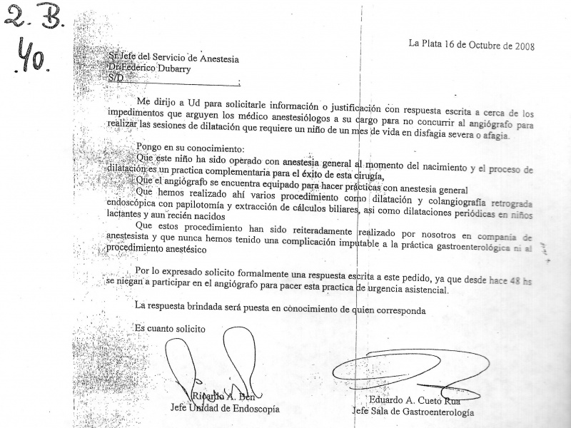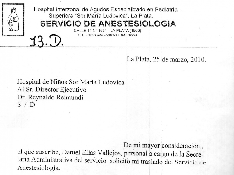 Encontrarse con ésta causa es encontrarse con fojas y fojas de cartas documento, denuncias policiales, notificaciones y correspondencia de todo tipo, que Daniel Elías Vallejos, secretario del servicio de Anestesiología del Hospital de Niños Sor María Ludovica de La Plata, ha ido acumulando durante más de quince años. Durante todo ese tiempo, no obstante sus contundentes pruebas, solo obtuvo el silencio de parte de las autoridades del hospital; de tres ministros de Salud de la provincia de Buenos Aires, y de los gobernadores Daniel Scioli y María Eugenia Vidal. De la estructura médica obtuvo, peor que la indiferencia, una violencia cruda y directa, exteriorizada en torturas, insultos y curiosos episodios violentos en su propia casa.