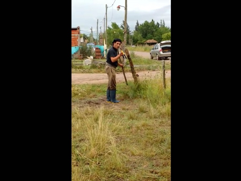 El hombre, que ingresó hacienda -vacas y caballos- al predio, muestra tener un trato cortante con las propietarias del mismo. En la filmación las mujeres le explicaban que habían recurrido a poner candados porque él fue quien trasgredió la seguridad del lugar.