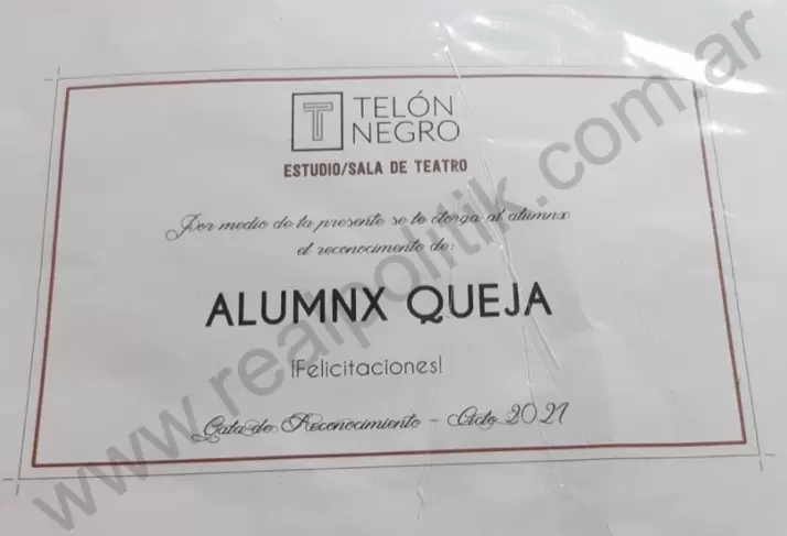 “Un profesor de teatro no se banca que un chico de 16 años le plantee lo que no le gusta. Y si esto resulta poco, a otro chico de quince años lo premió con el diploma al: más torpe”, contó la mamá de un alumno. En diálogo con REALPOLITIK, la mujer explicó que esto ocurrió en la fiesta de fin de año de la escuela.