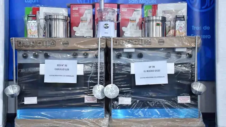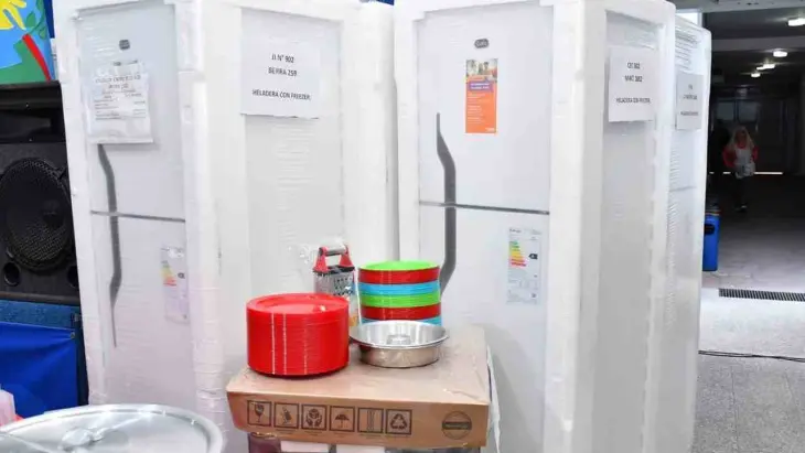 Las escuelas recibieron heladeras con freezer, cocinas industriales, termotanques, electrodomésticos, utensilios y productos de bazar, elementos que permitirán mejorar el servicio diario de los comedores escolares y garantizar mejores condiciones de enseñanza.