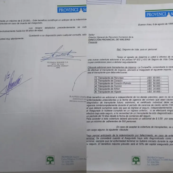 En los recibos de sueldo, el ítem aparece legalizado: un adicional que promete una cobertura que jamás existió. Los beneficios, según el contrato original, iban desde 50 mil dólares por un trasplante de corazón, pulmón o hígado. Pero esa promesa nunca fue alcanzable porque el servicio nunca cumplió las condiciones mínimas para entrar en vigencia.