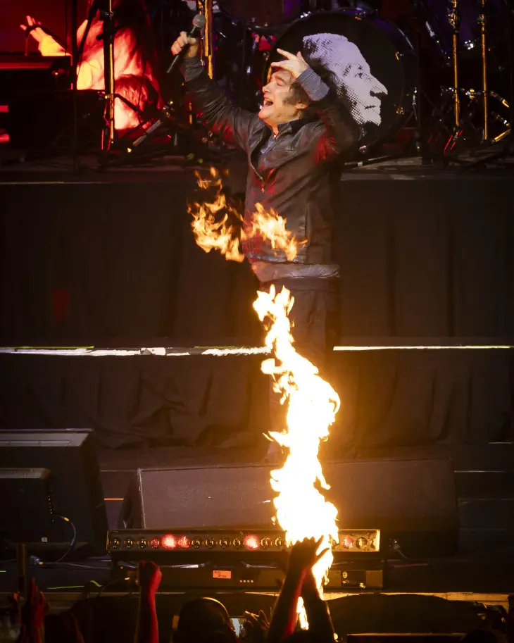 Durante el show, Milei interpretó clásicos del rock nacional, mientras los diputados lo acompañaban con sus instrumentos. Lilia Lemoine cantó “No me arrepiento de este amor” de Gilda, y el cierre fue con “Dame fuego” de Sandro, en la versión punk de Ataque 77. Allí se lo vio gritando afónico “¡kuka tira piedras!” mientras las pantallas mostraban imágenes de disturbios.