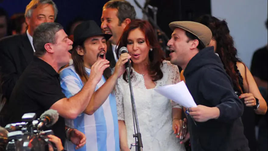 Sin registros de los cuatro presidentes que se sucedieron la banda en la última semana de 2001 (es decir Ramón Puerta, Adolfo Rodríguez Saá, Eduardo Caamaño y Eduardo Menem) ni tampoco de Néstor Kirchner, recién encontramos a Cristina Fernández animándome a convertir la voz mandataria en música, aunque vale decir en su favor que lo hizo solo de manera puntual y en un prudente segundo plano para ponerle unos sutiles coros a "Himnos de mi corazón". El clásico de Los Abuelos de la Nada había sido entonado al cierre de los festejos de su asunción el 10 de diciembre de 2007 en Plaza de Mayo por Alejandro Lerner, Gustavo Santaolalla, y Pablo Romero de Árbol.