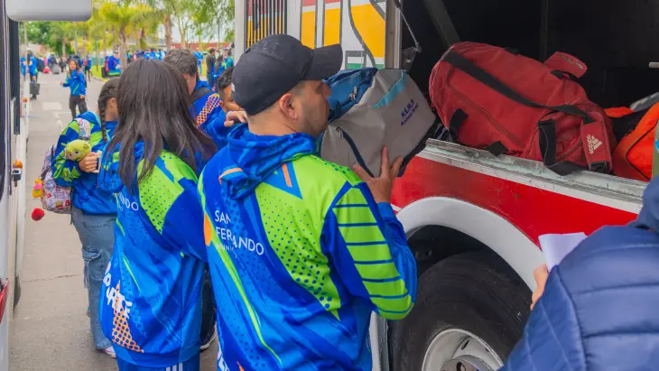 La comitiva sanfernandina viajó acompañada por sus profesores y entrenadores, integrando equipos deportivos y artísticos en una amplia variedad de disciplinas.