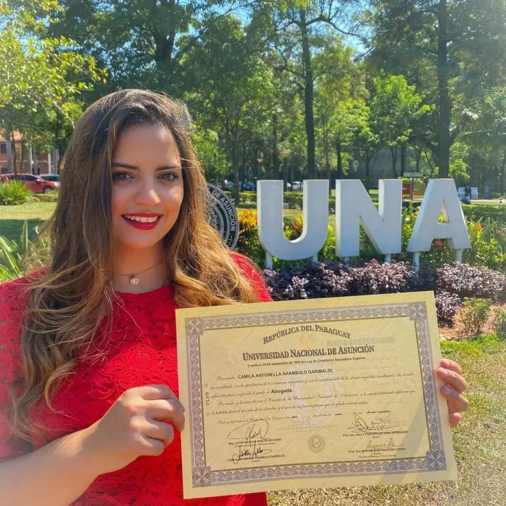 Camila Antonella Arámbulo Garibaldi es egresada de la facultad de Derecho de la Universidad Nacional de Asunción (UNA) en 2022 según los registros públicos de la institución. Sin embargo, no ejerce la abogacía y se volcó a publicitar inversiones online presentándose como “trader digital” a través de redes como Facebook, Instagram y TikTok. Allí, ofrecía cursos de inversiones de Eaconomy LLC, firma con sede en Las Vegas, Estados Unidos y actualmente investigada por acusaciones de fraude financiero y promoción de esquemas piramidales en países como Noruega, Canadá y Bolivia, según pudo confirmar REALPOLITIK.