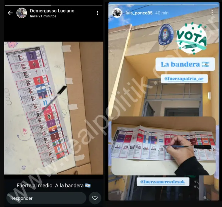 El secretario de Prensa Municipal, Luciano Demergasso, publicó en su estado de WhatsApp una foto con su boleta marcada, jactándose del sufragio. Por su parte, el secretario de Obras Públicas, Luis Ponce, fue todavía más lejos: compartió directamente en su historia de Instagram la imagen de su voto, en una clara infracción al Código Nacional Electoral.