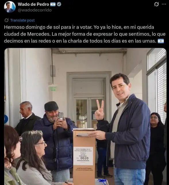 Uno de los episodios más tensos se produjo precisamente en la mesa 20, donde votó el exministro del Interior y dirigente mercedino Eduardo “Wado” de Pedro, hermano de crianza de Ustárroz. En la escuela Normal Superior General Justo José de Urquiza, una mujer denunció que no pudo sufragar porque en el padrón aparecía como si ya lo hubiera hecho. El reclamo derivó en una fuerte discusión dentro del colegio, con intervención de la Junta Electoral y las autoridades de mesa.