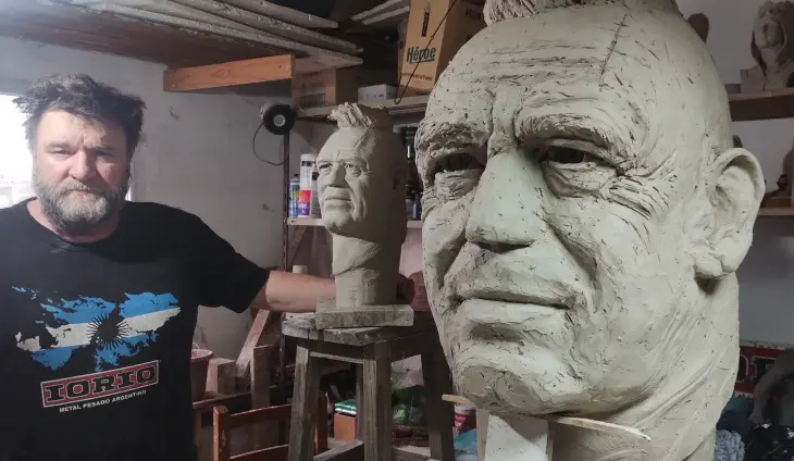 Consultado sobre el avance del trabajo, contó que “lo que se ve en los videos no es ni el 10 por ciento de la obra, ni siquiera el 2. La cabeza pesa unos 300 kilos, pero la escultura completa tendrá varias toneladas. Vamos a hacer cimentaciones, estructuras, el pedestal, y parte del trabajo en el lugar mismo”.