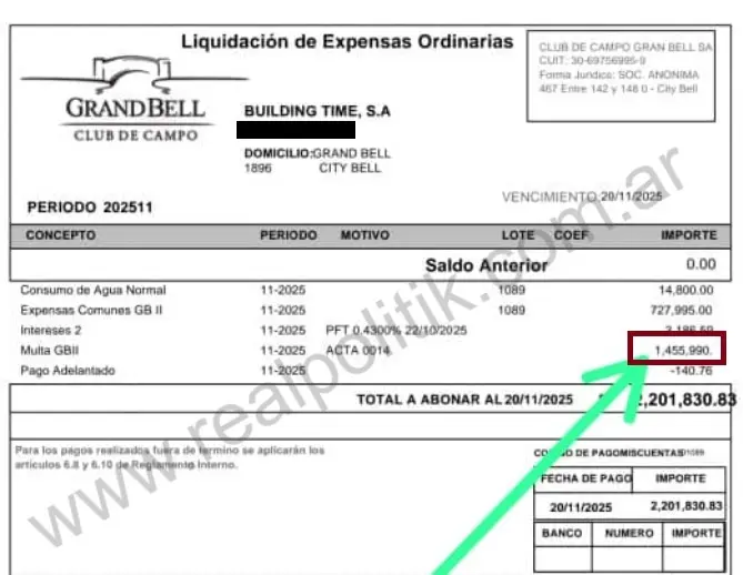 La ironía se vuelve aún más aguda si se repasa el historial del barrio. En 2017, el presidente del directorio del Grand Bell, Augusto Ripoll, fue imputado por administración fraudulenta y debió pagar una fianza de 300 mil pesos para no ir preso. Lo denunciaron sus propios vecinos por desviar fondos de las expensas hacia otro emprendimiento, Grand Bell II, incluso conectando el medidor eléctrico de un barrio al del otro.