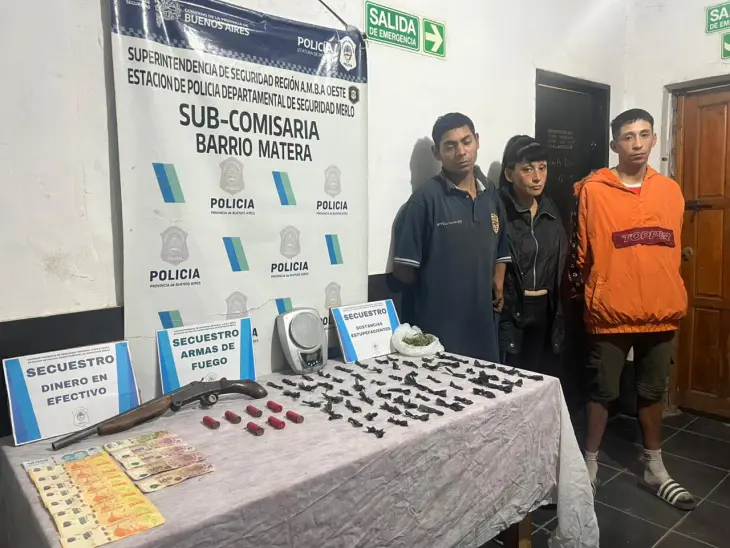 Los detenidos fueron identificados como Jorge Daniel Sundblad (33 años), Walter Iván Córdoba (31) y Edith Mercedes Coronel (49). Todos quedaron a disposición de la Unidad Funcional de Instrucción N.º 9 del Departamento Judicial de Morón, acusados de “Infracción a la Ley 23.737” (comercialización de estupefacientes) y “Tenencia de arma de fuego de uso prohibido”.
