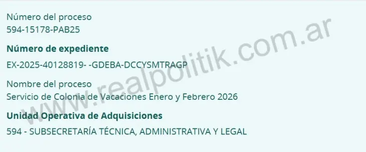 El gobernador bonaerense autorizó el procedimiento abreviado 594-15178-PAB25 para contratar una colonia de vacaciones durante enero y febrero de 2026. El servicio funcionará apenas treinta y ocho días —sólo de lunes a viernes— pero costará 68.283.720 pesos.