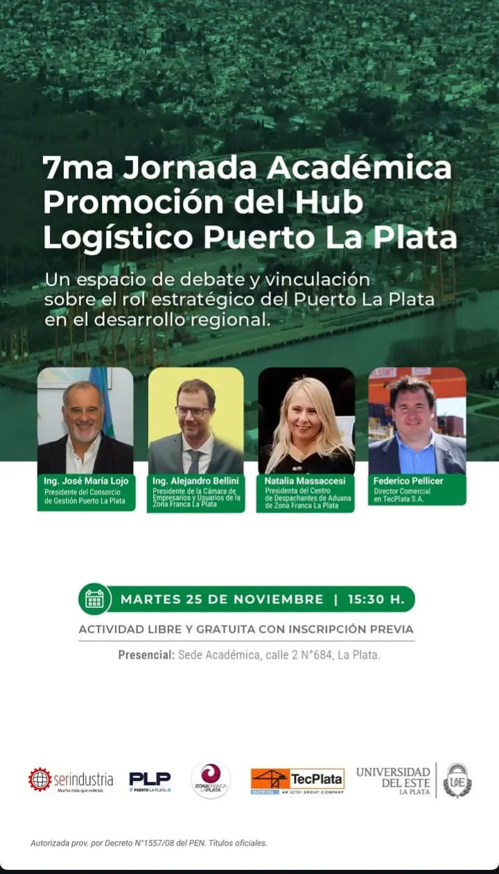 Darío Ríos, director de Serindustria, dialogó con RADIO REALPOLITIK FM (www.realpolitik.fm) y adelantó detalles de la séptima jornada académica de promoción del Hub Logístico del Puerto La Plata, un espacio que busca potenciar la articulación público-privada, atraer inversiones y consolidar al puerto como un punto estratégico para el comercio exte