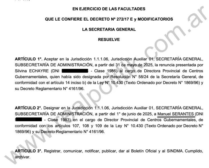 El 1 de junio de 2025, a través de una resolución oficial, Serantes fue designado Director Provincial de Centros Gubernamentales, dependiente de la Subsecretaría de Administración de la Secretaría General. Un área estratégica que concentra un volumen enorme de recursos.