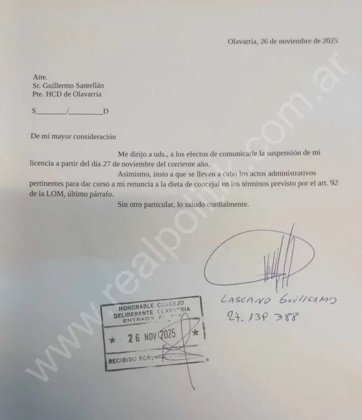 La interna de La Libertad Avanza (LLA) Olavarría volvió a estallar y esta vez con un movimiento que dejó expuesto el nivel de desesperación dentro del espacio. Guillermo Lascano, hasta ahora titular de la oficina local del PAMI, interrumpió su licencia y regresó de urgencia a su banca en el Honorable Concejo Deliberante de Olavarría. No volvió por convicción, ni por vocación legislativa: volvió porque vio que se le iba otro concejal más.