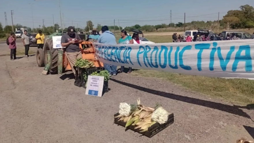 “Lamentablemente, al no poder vender nuestro producto, todo queda en las quintas o los mercados se sobreestockean”, inició Agustín Valdiviezo, quien encabezó la movilización en la intersección de la avenida 520 y la ruta 36. “Hoy está entrando tomate de Chile, Brasil y Paraguay. Eso hace que nuestra producción se quede acá, sin salida”, lamentó.