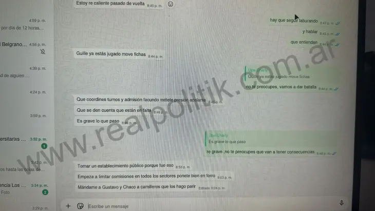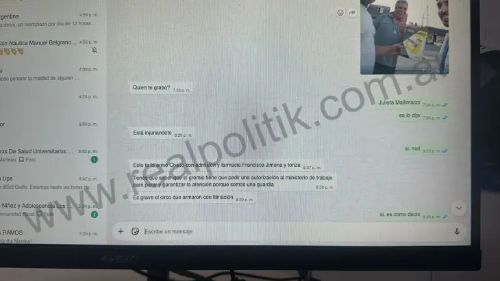 Tras el concurso, el clima interno estalló. Las médicas de guardia realizaron una protesta y se negaron a atender pacientes. En ese contexto, Guillermo Ramos salió a cubrir la guardia personalmente. Sin embargo, dejó abierto su WhatsApp Web en el consultorio que utilizó.
