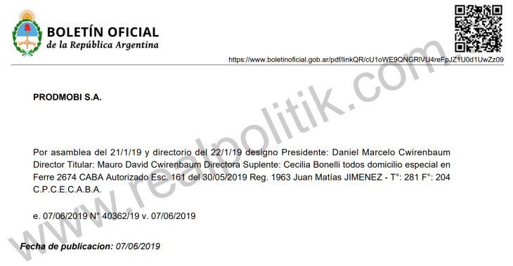 Prodmobi SA es una empresa que históricamente ha sido vinculada a negocios con el estado y a relaciones políticas que despiertan interrogantes. La compañía, presidida por Daniel Cwirenbaum —con Mauro Cwirenbaum y Cecilia Bonelli como directores—, ya había quedado en el centro de la polémica en 2021, cuando su titular se mostró públicamente apoyando la campaña de Horacio Rodríguez Larreta junto a figuras clave de Juntos por el Cambio como Emiliano Yacobitti, Diego Santilli, Martín Lousteau y Miguel Ángel Pichetto.