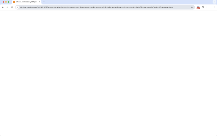 El textual del artículo publicado por Infobae y luego eliminado (link: https://www.infobae.com/espana/2026/01/29/la-gira-secreta-de-los-hermanos-escribano-para-vender-armas-al-dictador-de-guinea-y-al-clan-de-los-buteflika-en-argelia/).