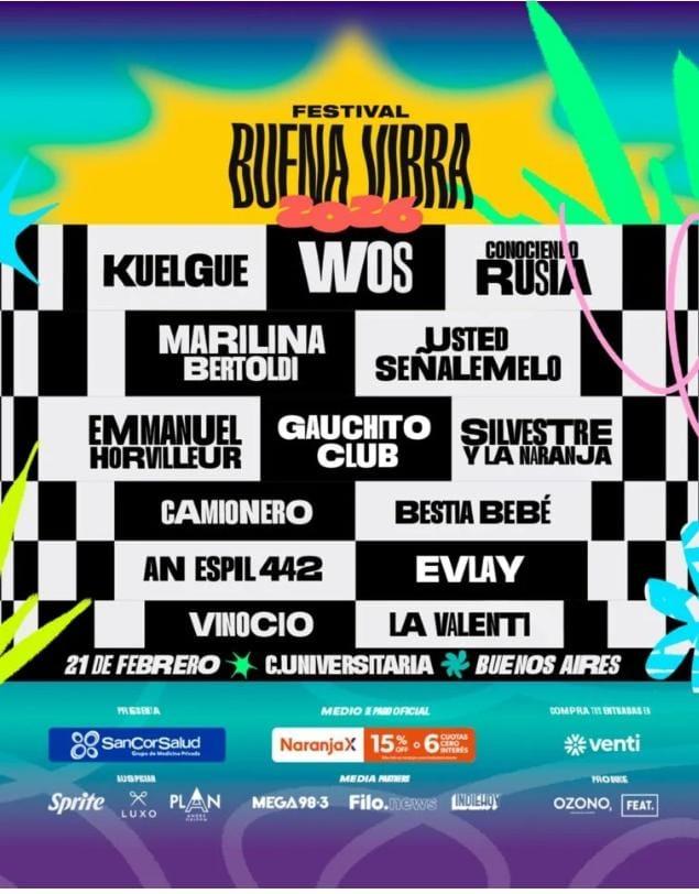 El Festival Buena Vibra vuelve a escena y ya empieza a marcar la agenda fuerte del verano 2026 en la Ciudad de Buenos Aires. La próxima edición se realizará el 21 de febrero en Ciudad Universitaria, el espacio que el evento adoptó como propio y que se consolidó como uno de los grandes puntos de encuentro de la música joven y alternativa.