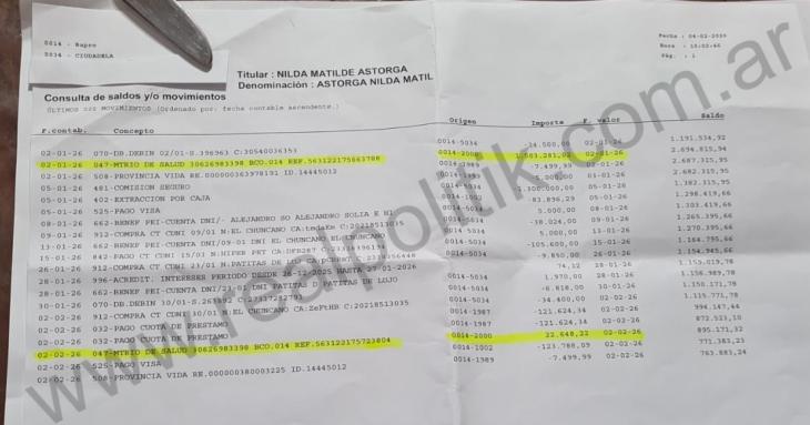 La situación de Nilda Matilde Astorga, la trabajadora del hospital Ramón Carrillo que denunció persecución laboral mientras atraviesa un tratamiento por cáncer, sumó un capítulo que agrava aún más el cuadro administrativo y humano. Este jueves, al concurrir al Banco Provincia, constató que el ministerio de Salud de la provincia de Buenos Aires le depositó apenas 22 mil pesos en concepto de sueldo.