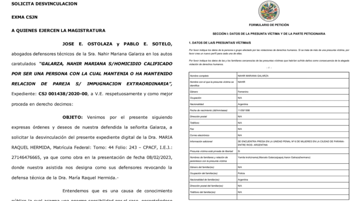 La defensa técnica histórica de Galarza envió la revocatoria y despido de la fallecida letrada, de puño y letra de Nahir, tanto a la Corte Interamericana de Derechos Humanos como a los medios de comunicación, donde queda demostrado de forma fehaciente que la letrada, cuando interpuso su recurso, ya tenía su poder revocado.
