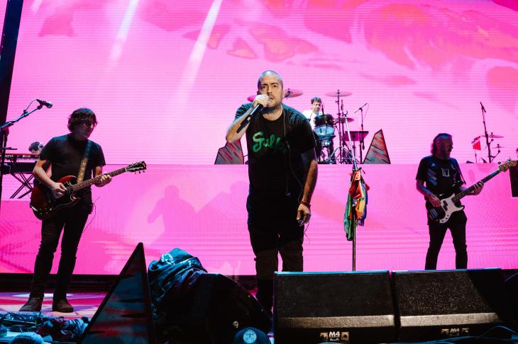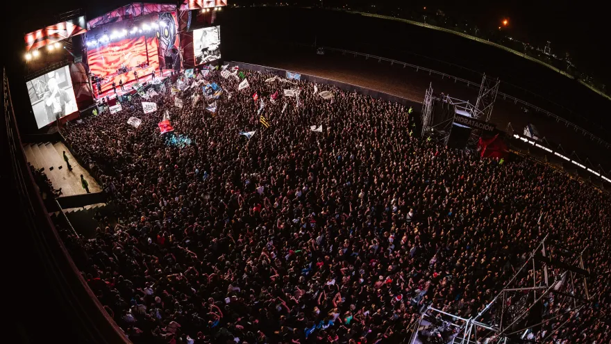 Pero el show no fue solo música. Sin pausas y con una postura clara, la banda dejó ver también su mirada social y política. En las pantallas se proyectaron imágenes vinculadas a la reforma laboral y la ley de glaciares, reforzando un mensaje que viene atravesando su obra desde hace años: el rock como espacio de expresión y posicionamiento.