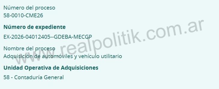 El proceso corresponde a la licitación 58-0010-CME26, impulsada por el organismo que actualmente conduce Carlos Baleztena, y contempla la compra de dos autos sedán y un utilitario, destinados al uso de funcionarios.