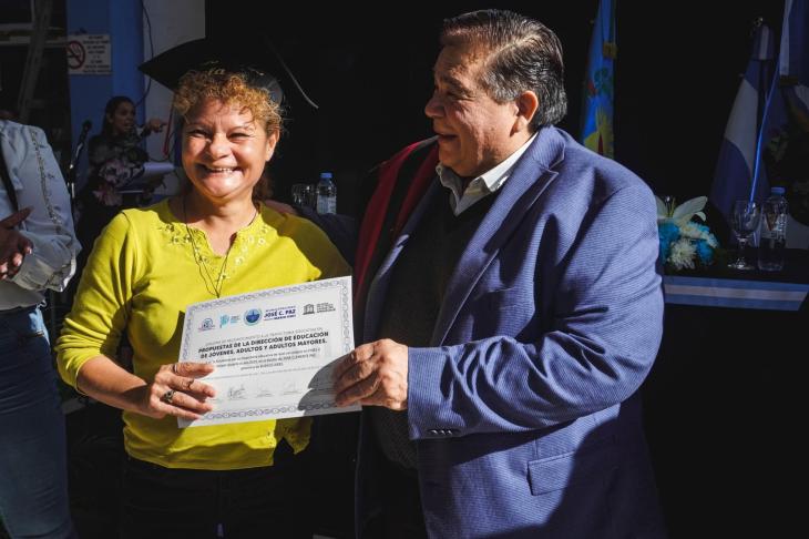 Acompañaron la ceremonia el Secretario de Gobierno, Pablo Mansilla; la Directora Municipal de FINES II, Gladys Arriola; y la Inspectora de Modalidad Adultos y CENS, María de las Mercedes Lois, junto a autoridades educativas y referentes del área.